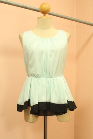 NEW NEW !!! 5A007A- เสื้อเเขนกุด ผ้าชีฟอง -SILK สีฟ้าชายระบายสีดำ งานดีไซต์สไตล์เเบบ Topshop งานดีตัดเย็บปราณีตค่ะ-มีซับในทั้งตัว สินค้านำเข้าเกาหลี