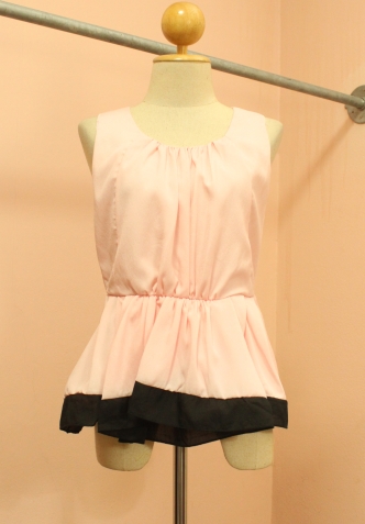NEW NEW !!! 5A008C- เสื้อเเขนกุดชีฟอง แต่งริบบิ้นดำม้วนด้านหน้า สีชมพู (อ่อน) งานดีมีซิปหลัง งานนำเข้าเกาหลีค่ะ