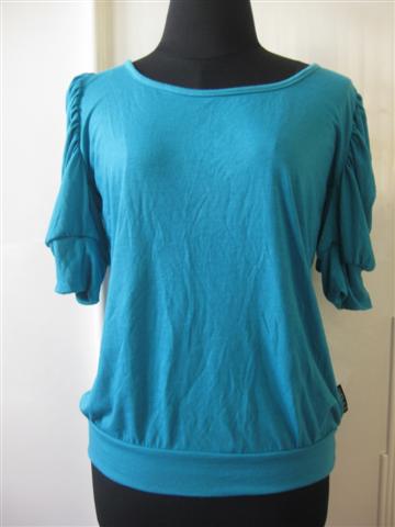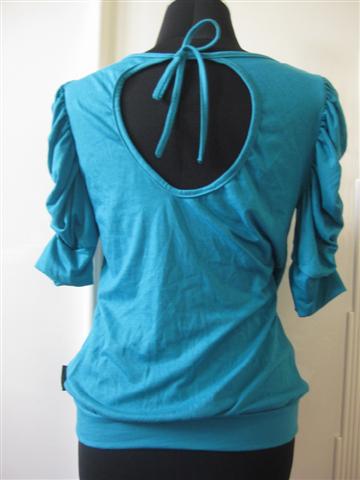 11. [used] เสื้อฟ้าสดผูกโบว์หลัง เอวจั๊ม แขนสวยมากๆ ผ้าเป็นขุยเล็กน้อยนะคะ