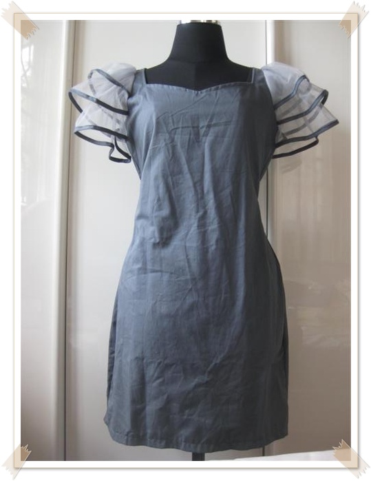 43. [used] เดรสสั้นเทาคอจีนแต่งกระดุมทอง