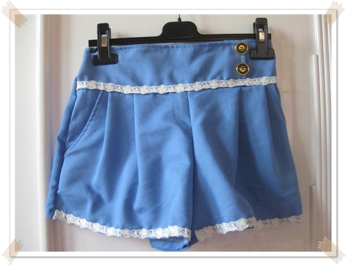 9. [new] กางเกงสีฟ้าแต่งลูกไม้ ด้านหลังเป็นยางยืด