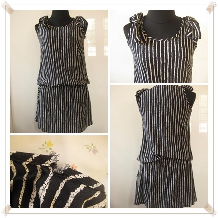 42. [used] เดรสสั้นดำลายทางครีม