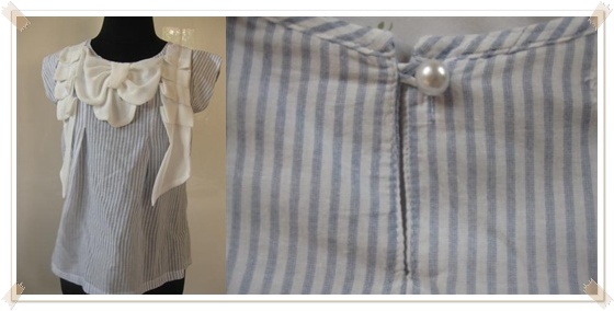 44. [used] เสื้อลายทางฟ้าขาวแต่งโบว์ชีฟอง