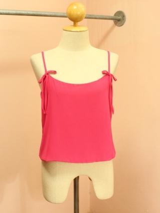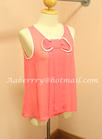 NEW NEW !!! 5A010- เสื้อแขนกุด ผ้าSatin นอกเนื้อดี เเต่งโบว์ด้านหน้า ด้านหลังเป็นกระดุม งานสไตล์ TOPSHOP