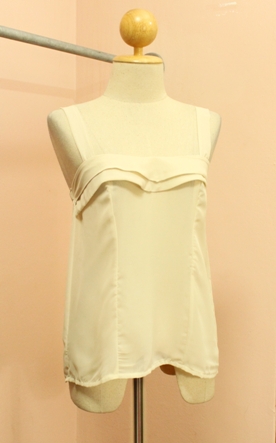 NEW NEW !!!383- เสื้อสายเดี่ยวสีขาวครีม (สีและทรง ดีไซต์สไตล์แนววินเทจ) ตีเกร็ดหน้า อกยางยืด