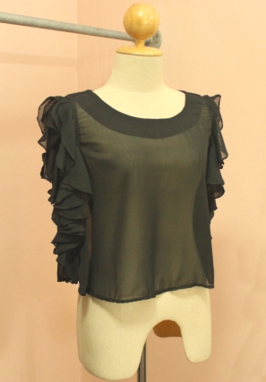 NEW NEW !!! 5A007A- เสื้อเเขนกุด ผ้าชีฟอง -SILK สีฟ้าชายระบายสีดำ งานดีไซต์สไตล์เเบบ Topshop งานดีตัดเย็บปราณีตค่ะ-มีซับในทั้งตัว สินค้านำเข้าเกาหลี