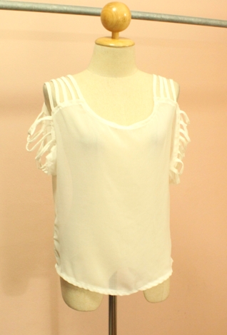 NEW NEW !!!597- เสื้อชีฟองสีขาวแขนสั้น เปิดไหล่ ฉลุช่วงอก