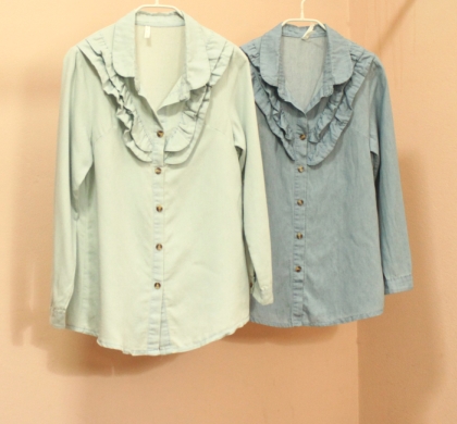 NEW NEW !!! 5A015- เสื้อเชิ้ตยีนส์ อกระบายหน้าหลัง งานสไตล์แบบ LANDMEE ทรงน่ารักค่ะ