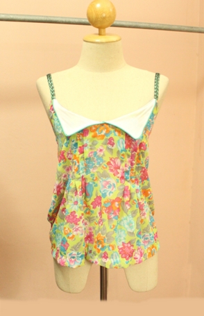 NEW NEW !!!394E- เสื้อกล้ามผ้าชีฟอง สายเดี่ยวข้างเดียว แต่งติดดอกไม้รอบอก สีเขียวตอง ทรงสวยค่ะ สีสันน่ารักเข้ากับ Summer นี้มากๆค่ะ