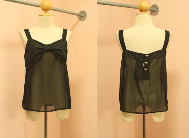 NEW NEW !!!322A- เสื้อกล้ามสายเดี่ยวผ้าชีฟอง อกโบว์ กระดุมหลังโบว์ (ช่วงคอ) สีดำ ใส่ขึ้นมาน่ารักค่ะ