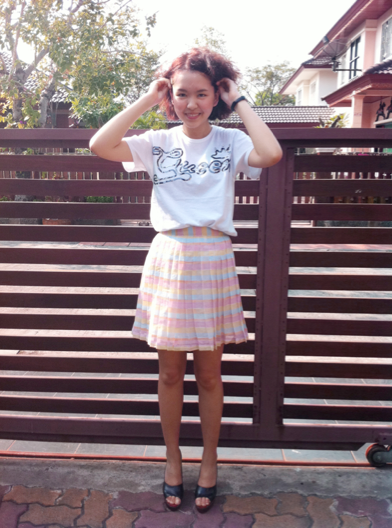 Detail : กระโปรงเอวสูง ผ้า cotton ลายทาง อัดพลีท