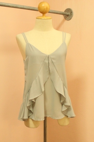 NEW NEW !!! 381A- เสื้อสายเดี่ยวระบายเฉียง สีเทา ผ้าชีฟองเนื้อดีทรงสวยค่ะ