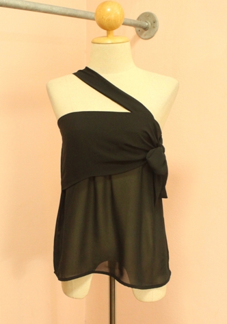 NEW NEW !!!322-1 เสื้อกล้ามสายเดี่ยวผ้าชีฟอง อกโบว์ กระดุมหลังโบว์ (ช่วงคอ) สีดำ ใส่ขึ้นมาน่ารักค่ะ