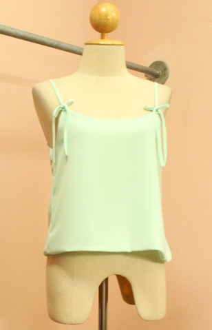 NEW NEW !!!322-2 เสื้อกล้ามสายเดี่ยวผ้าชีฟอง อกโบว์ กระดุมหลังโบว์ (ช่วงคอ) สีเขียว ใส่ขึ้นมาน่ารักค่ะ