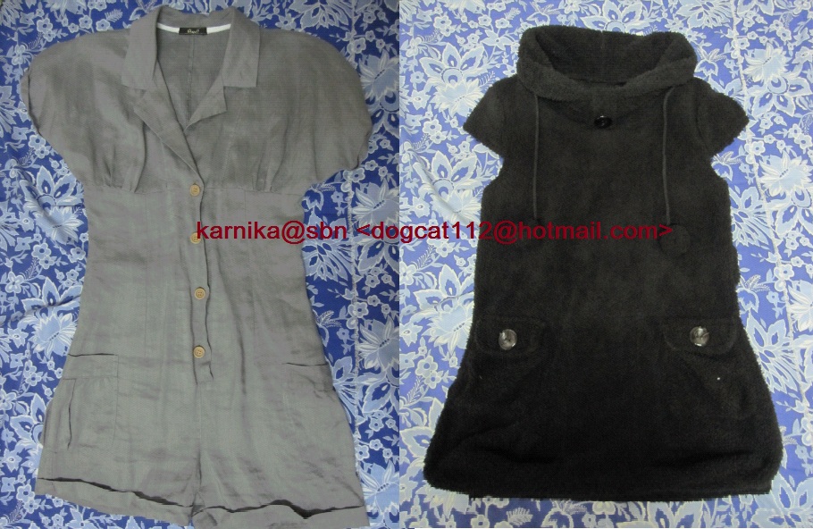 เห็นplaysuit กำลังอินเลยงัดตัวนี้ออกมาให้ชม เพลย์สูท(ชุดเสื้อกางเกงติดกัน)เนื้อดีสีเทาอ่อน มีดีเทลเก๋ๆตรงแขนกว้างพรางหุ่นให้ดูสเลนเดอร์ ใส่ง่ายตัวเดียวอยู่ จะวันชิวๆ หรือวันลุยๆก้อสวยเริ่ดไม่แคร์สื่อ!! อีกตัวที่นำมาเอาใจคนขี้เหนาว กับเสื้อผ้าขนหนูสีดำห้อยปอมปอม.. น่ารักไม่หวั่นแม้วันหนาวมากกกกกกก