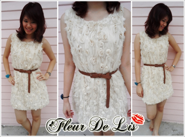 dress รูปดอกกุหลาบ สีครีม