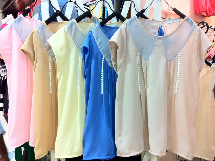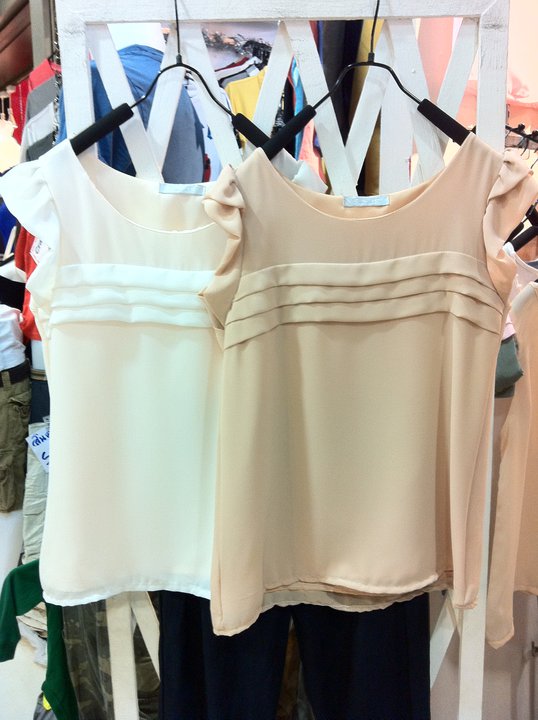 เสื้อชีฟองคอมุก อก38 ยาว 23 เหลือสีครีม CF ราคา 320