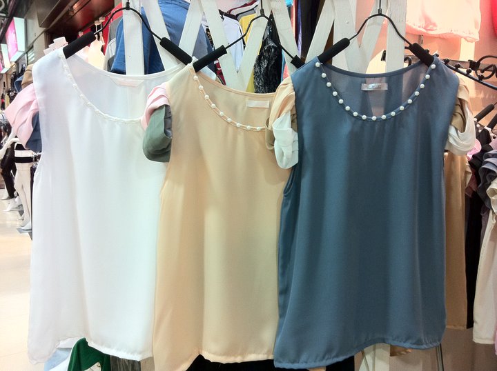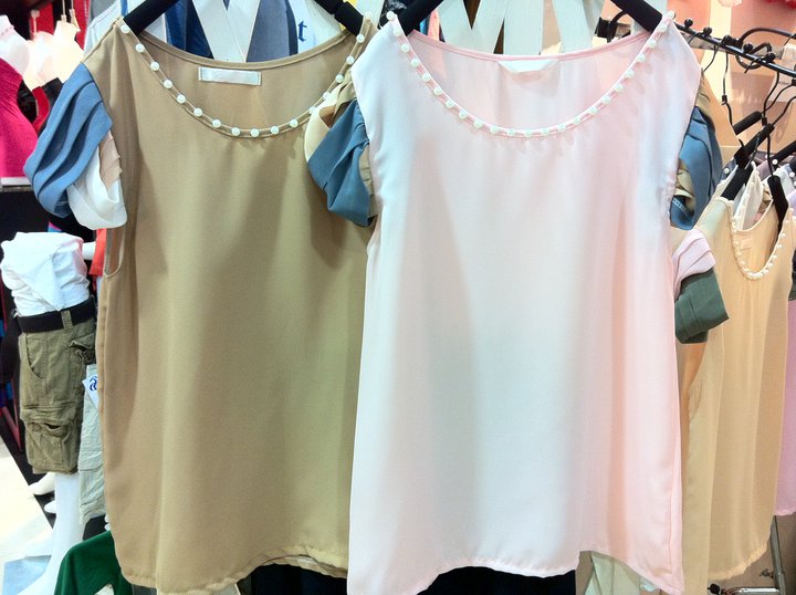 เสื้อแขนกุดชีฟอง bittersweet ชมพูขายแล้วค่ะ สีน้ำเงินCF ยาว 23 อก 34 ราคา 320