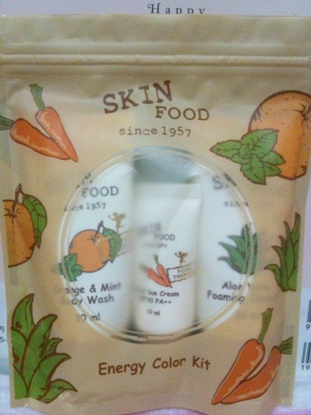 Skinfood Carot Gift Set เซ้ท 3 ชิ้น ประกอบไปด้วย Skinfood Orange Wash 30ml โลชั่นอาบน้ำหอมกลิ่นส้ม SKINFOOD Aloe Vera Foaming Cleanser 30ml โฟมล้างหน้าจากธรรมชาติ ให้ผิวหน้าสะอาด ขจัดเซลล์ผิวเสื่อมสภาพ เหมาะสำหรับผิวมัน แถมฟรี Carrot Sun Cream SPF30PA++ 10ml กันแดดแครอท ปกป้องผิวหน้าจากแสงแดด ขาย 150 บาท
