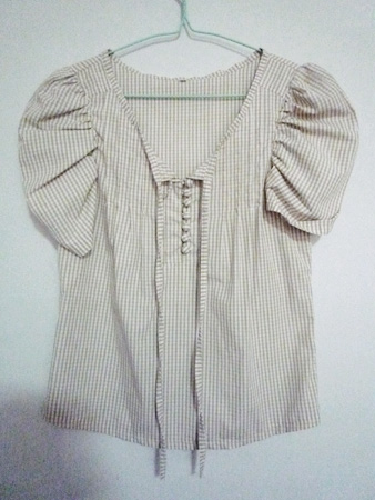 *เสื้อไหล่พองลายสก็อตสีน้ำตาลอ่อน