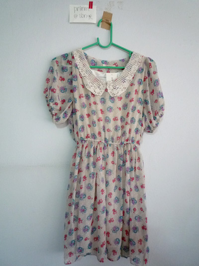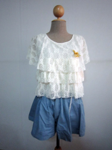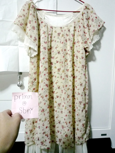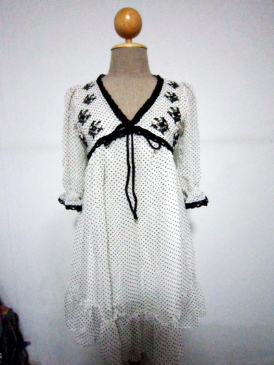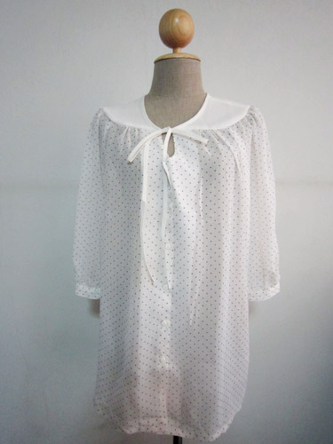 แขนยาวสามส่วน มีกระดุมแกะได้ทั้งตัวคล้ายเชิ้ต ผูกโบว์ที่คอ ลายจุดเล็กๆ น่ารักมาก ขาย 300 บาท