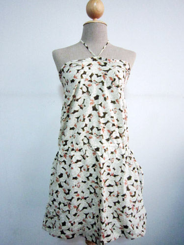 (used once สภาพดีเหมือนใหม่) เดรสสั้นใส่สบาย สายเดี่ยวตกแต่งที่คอด้วยปกเล็กๆ ที่เอวเป็นขอบยางลายผ้าน้องกระต่ายน้อยจากร้านโขมพัสตร์