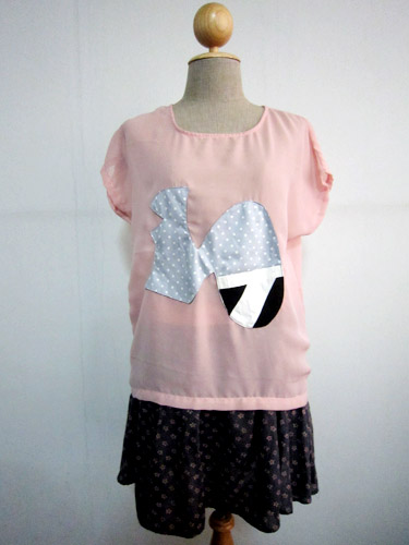 *ok heyla เสื้อผ้าชีฟองสีชมพูติดผ้าชิ้นลายกระต่ายน้อย แบรนด์จตุจักร