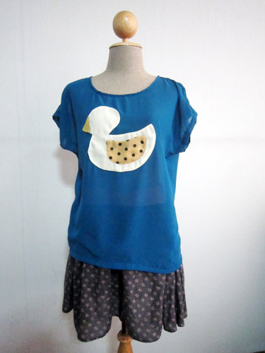 *ok heyla เสื้อผ้าชีฟองสีน้ำเงินติดผ้าชิ้นลายเป็ดน้อย แบรนด์จตุจักร