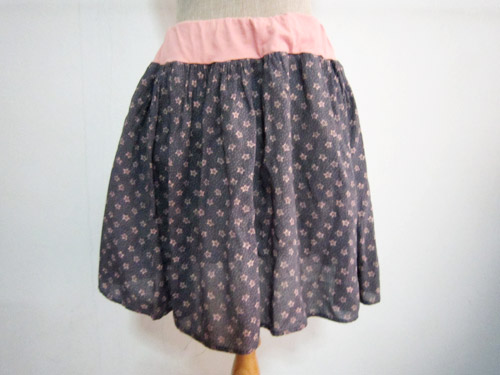 *DAHONG กระโปรงพิมพ์ลายดาวสีพื้นสีเทาดำ ขอบยางยืดสีชมพูสีเดียวกับดาว