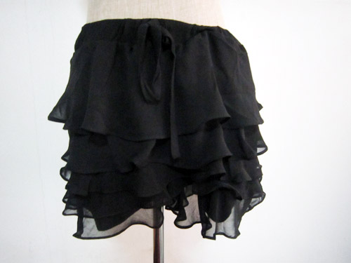 *กางกางขาสั้นชีฟองชั้นๆคล้ายกระโปรงสีดำ