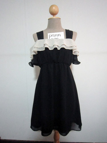 แขนยาวสามส่วนติดยางยืดที่ปลายแขนและลูกไม้พริ้วสีดำ น่ารักมากๆ ชายประโปรงพริ้ว มีซับในในตัว