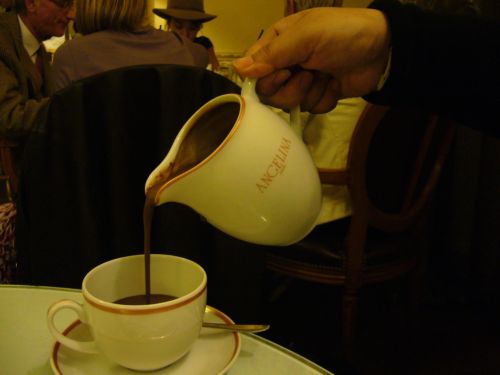 แล้วผึ้งก็ทำการบ้านมาแล้วว่า ไอ้ข้างหลังสวนนี้ เค้ามีร้าน Hot chocolate ที่ขึ้นชื่อมาก นามว่า Angelina ค่ะ 555555 เป็นไปตามแผน เจอคนอเมริกันถือถุงขนมร้านนี้ ปรี่เข้าไปถามเลยค่ะ ว่าร้านอยู่ตรงไหนแน่ๆ พอเค้่าบอกทางเสร๊จ เค้าบอกยูต้องทาน Hot Chocolate นะอร่อยมาก เห็นหุ่นแล้ว ชกรุ่นเดียวกับเราก็ไม่แปลกใจเลย 55555