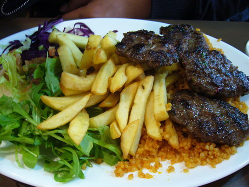 ทีแรกเค้าเสิร์ฟ สเต๊ก 4 ชิ้น แฟนบ่นว่าไม่อิ่มปุ๊ป เหมือนเค้าฟังไทยออกเลยค่ะ เค้าเอามาให้อีก 3 ชิ้น แล้วก็ให้ French Fried อีกหน่อย เรากับแฟนขำเลย โต๊ะอื่นก็มองนะว่า โอ้โหโต๊ะนี้ได้แถมด้วย คริ คริ คริ รู้ซะมั่งใครเป็นใคร 5555 สรุปเค้าแถมให้ทุกโต๊ะจ๊ะ แป่ว