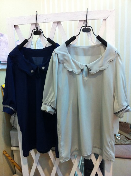 เสื้อชีฟองปกสองชั้น ทับด้วยผ้าซีทรูลายหัวใจ ตรงกลางตีเกล็ดยาวลงมา 350 บาท