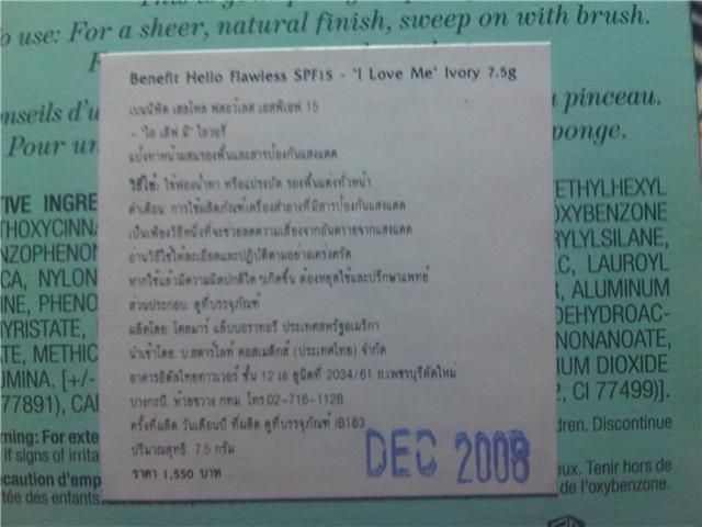 แป้งรองพื้น benefit hello flawless spf15 สีivory ซื้อมา จากcentral 1550bath ขาย 1000bath เท่าน้น