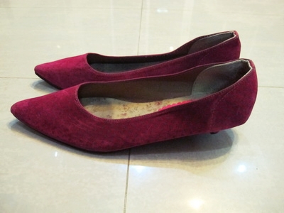 รองเท้าแฟชั่นมือสองค่ะ size 38 เป็นส้นสูงเตี้ยๆหัวแหลมเฟี้ยววววว เป็นผ้ากำมะหยี่ชมพู ลายจุดเขียวค่ะ ขาย 150 บาทค่ะ
