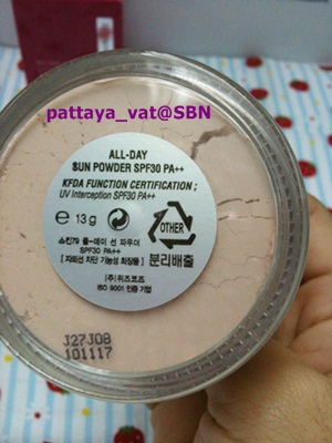 11.Skin79 All day sun powder SPF30 แป้งฝุ่นไดมอนต์ สูตรกันแดด ดูดซับความมันเป็นเลิศ ด้วยส่วนผสมของ พลอย สาหร่ายทะเล ไข่มุก ให้ผิวกระจ่างใส และแอปเปิ้ล พืช ส้ม ช่วยป้องกันการเกิดสิวและกระชับรูขุมขน มาในแพ็กเกจสุดเลิศ มีพับด้านใน ด้านบนเป็นขวดรูปเพชรสีชมพู ขนาด 13 กรัม ขาย 890 บาท