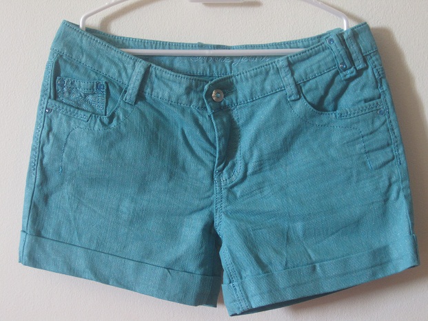 155. กางเกงขาสั้ยยีนส์สีฟ้าอมเขียว กระดุมคริสตัลล ตกเเต่งด้วยเลื่อมรอบกางเกง สวยมากๆค่ะ
