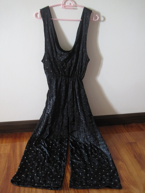 190. Jumpsuit ผ้านิ่มสีดำลายจุดสีทอง ผ้านิ่มยืด ใส่สบายมากค่ะ