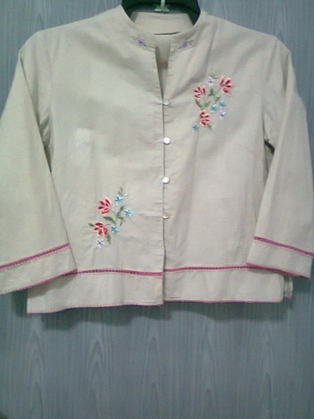 3. เสื้อสีครีมแขนยาว ลายดอกไม้ รอบอก 34 " ยาว 21 .