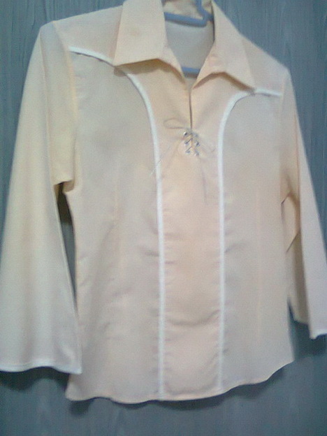 20. เสื้อเชิ๊ตสีเหลืองอ่อน แขนยาว 5 ส่วน รอบอก 38-40" ยาว 23 " เนื้อผ้ายืด