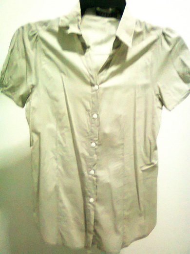 14. เสื้อเชิ๊ตสีน้ำเงินผ้ามันแขน 5 ส่วน ผ้ายืดนิดๆๆ รอบอก 34-36" ยาว 18" มีซิปด้านข้าง