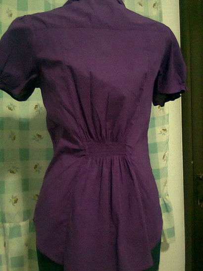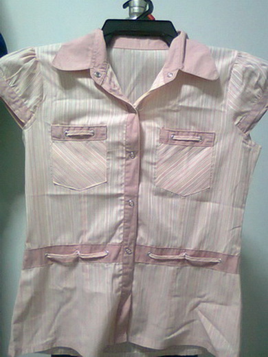 18. เชิ๊ตสีโอรส แขนสั้น แขนตุ๊กตาแต่งขอบสีชมพู รอบอก 33 " ยาว 21 "