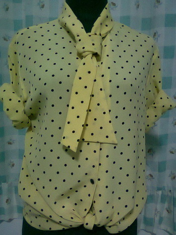 6. เสื้อสีเหลืองลายจุดสีดำ เนื้อผ้าบาง รอบอก 40-42 " ยาว 27 "