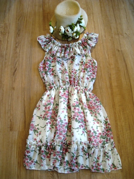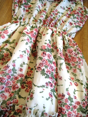 19.เดรสใหม่ผ้าชีฟองค่ะ พื้นสีครีม ดอกไม้กุหลาบชมพู