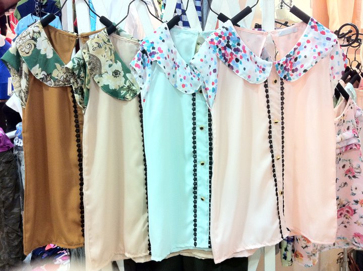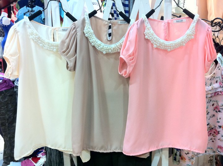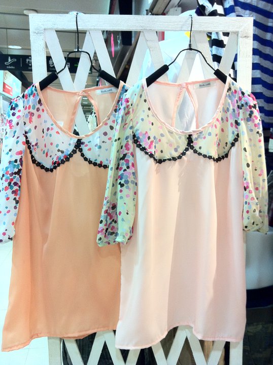 เสื้อปกบัว ผ้าชีฟอง แขนปาด อก 36 ยาว 24 นิ้ว 300 บาท