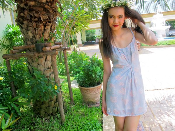 Detail : เดรสลายดอกสีฟ้า แต่งสายเปีย