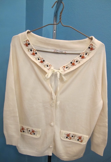 เสื้อคลุมคาดิแกน งานปักสวยและละเอียดมากค่ะ สีออกขาวครีมนะค่ะ SIZE M ค่ะ SALE 700 บาทค่ะ