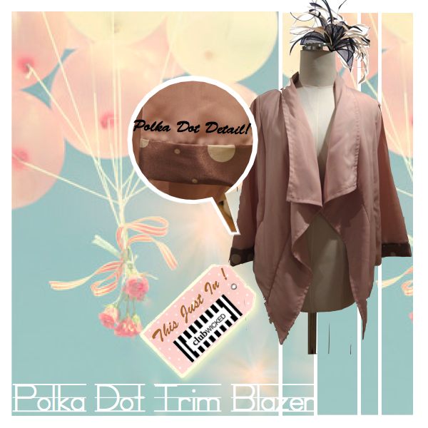 THIS JUST IN ! Polka Dot Trim Blazer เสื้อคลุมเก๋ๆ สำหรับสาว CW ค่ะ เนื้อผ้าดี นิ่ม ใส่สบาย เล่นดีเทลด้านหน้า และปลายแขนลาย Polka Dot สีชมพูอ่อน