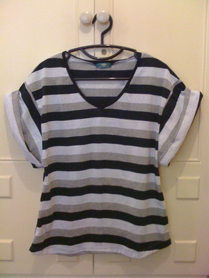 เสื้อตัวยาวลายทาง สีเทา 100 บาท